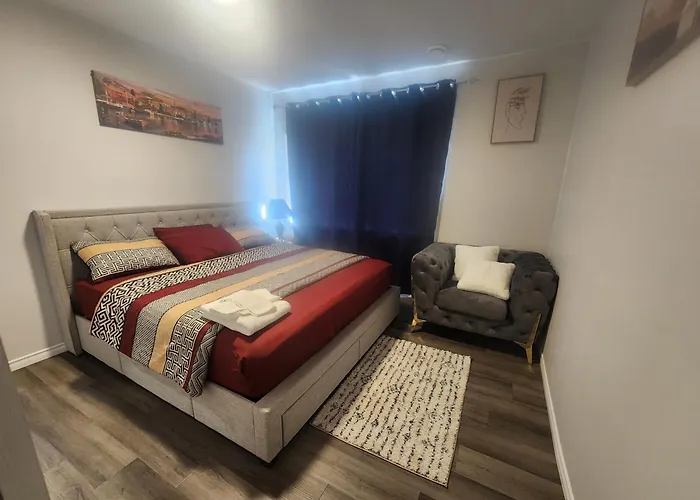 To enjoy your vacation in Airdrie, stay at the spacious 1-bedroom Cozy One Bedroom In Airdrie apartment, which is at a distance of 4.8 km from CrossIron Mill and around 10 minutes' drive from Book Totem Sculpture. The apartment also has a patio overlooking the street.